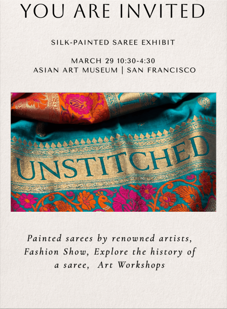 Unstitched celebrates handwoven silk saris transformed into narrative works of art, revealing how artistic expression fluidly moves between canvas and textile. The day also features a fashion show at 3:00 PM and an immersive, hands-on visual experience exploring the thousand-year history of the saree.